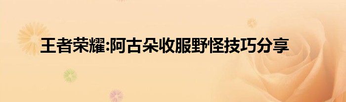王者荣耀:阿古朵收服野怪技巧分享
