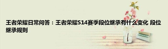今天来聊聊关于王者荣耀日常问答:王者荣耀S14赛季段位继承有什么变化,段位继承规则的文章,游戏是很多人的选择,但是游戏玩多了也会身心疲惫,现在就为大家来简单介绍下王者荣耀日常问答:王者荣耀S14赛季段位继承有什么变化,段位继承规则,希望对各位小伙伴们有所帮助。