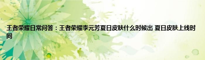 问:王者荣耀李元芳夏日皮肤什么时候出?