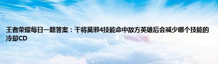 今天来聊聊关于王者荣耀每日一题答案:干将莫邪4技能命中敌方英雄后会减少哪个技能的冷却CD的文章,游戏是很多人的选择,但是游戏玩多了也会身心疲惫,现在就为大家来简单介绍下王者荣耀每日一题答案:干将莫邪4技能命中敌方英雄后会减少哪个技能的冷却CD,希望对各位小伙伴们有所帮助。