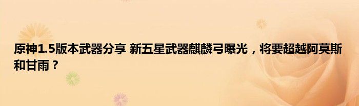 首先是新的五星弓Kirin,中译就是麒麟,而甘雨是半人半仙的血脉正好有麒麟血统,看到这把弓的名字让人很难不联想到甘雨,不过这把武器要怎么设计才干超过阿莫斯?或者说是阿莫斯注重蓄力攻击的提升,麒麟弓注重小技能和大招的提升。