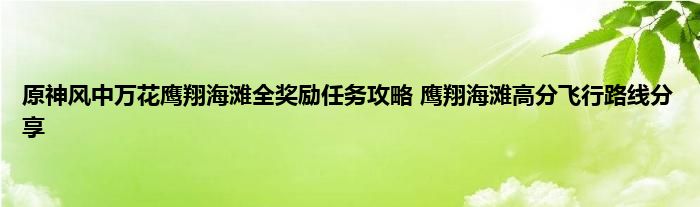原神风中万花鹰翔海滩任务是飞行任务,需要玩家按时收集天上的道具,然后返回地面,主要是收集路线比较难以规划,完成的分数越高奖励越多,那么有没有什么高分的飞行路线呢,小编收集和整理了高分飞行路线,下面就一起来看看吧。