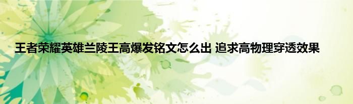 今天来聊聊关于王者荣耀英雄兰陵王高爆发铭文怎么出 追求高物理穿透效果的文章,游戏是很多人的选择,但是游戏玩多了也会身心疲惫,现在就为大家来简单介绍下王者荣耀英雄兰陵王高爆发铭文怎么出 追求高物理穿透效果,希望对各位小伙伴们有所帮助。