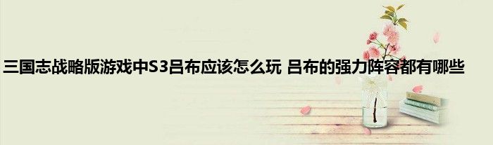 今天来聊聊关于三国志战略版游戏中S3吕布应该怎么玩 吕布的强力阵容都有哪些的文章,游戏是很多人的选择,但是游戏玩多了也会身心疲惫,现在就为大家来简单介绍下三国志战略版游戏中S3吕布应该怎么玩 吕布的强力阵容都有哪些,希望对各位小伙伴们有所帮助。