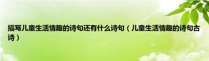 大家好,小科来为大家解答以上问题。描写儿童生活情趣的诗句还有什么诗句,儿童生活情趣的诗句古诗很多人还不知道,现在让我们一起来看看吧!