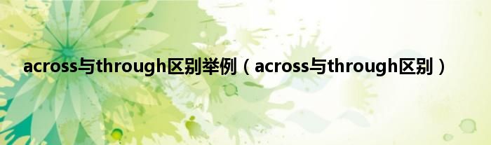 大家好,小科来为大家解答以上问题。across与through区别举例,across与through区别很多人还不知道,现在让我们一起来看看吧!
