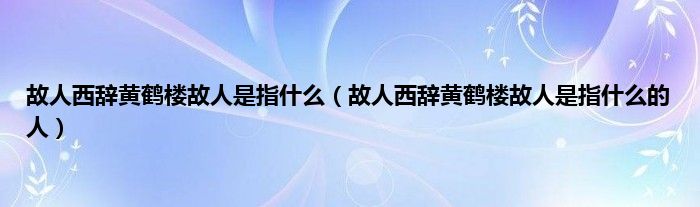 大家好,小科来为大家解答以上问题。故人西辞黄鹤楼故人是指什么,故人西辞黄鹤楼故人是指什么的人很多人还不知道,现在让我们一起来看看吧!