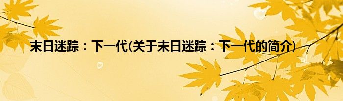 大家好,末日迷踪:下一代,关于末日迷踪:下一代的简介很多人还不知道,现在让我们一起来看看吧!