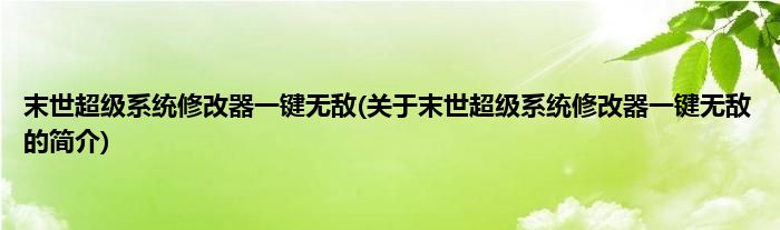 本文关于末世超级系统修改器一键无敌的简介就讲解完毕,希望对大家有所帮助。