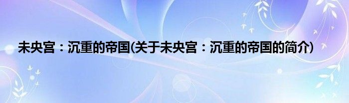 未央宫:沉重的帝国(关于未央宫:沉重的帝国的简介)