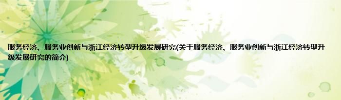 本文关于服务经济、服务业创新与浙江经济转型升级发展研究的简介就讲解完毕,希望对大家有所帮助。