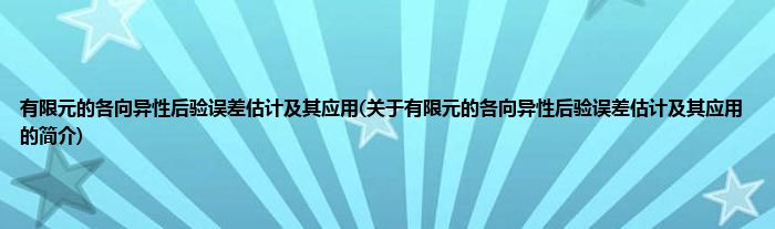 大家好,有限元的各向异性后验误差估计及其应用,关于有限元的各向异性后验误差估计及其应用的简介很多人还不知道,现在让我们一起来看看吧!