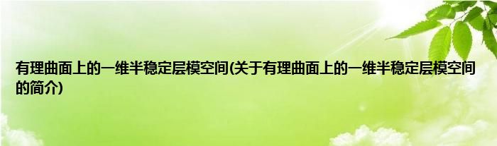 大家好,有理曲面上的一维半稳定层模空间,关于有理曲面上的一维半稳定层模空间的简介很多人还不知道,现在让我们一起来看看吧!