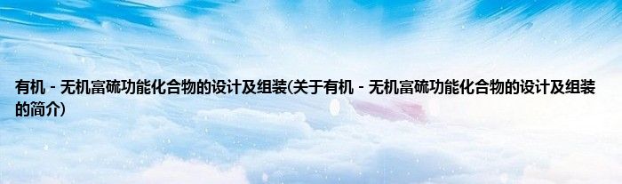大家好,有机-无机富硫功能化合物的设计及组装,关于有机-无机富硫功能化合物的设计及组装的简介很多人还不知道,现在让我们一起来看看吧!