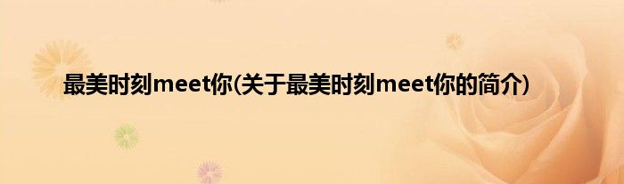 本文关于最美时刻meet你的简介就讲解完毕,希望对大家有所帮助。