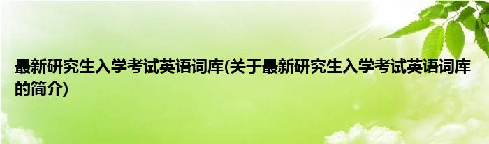 本文关于最新研究生入学考试英语词库的简介就讲解完毕,希望对大家有所帮助。
