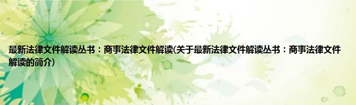 本文关于最新法律文件解读丛书:商事法律文件解读的简介就讲解完毕,希望对大家有所帮助。