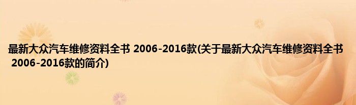最新大众汽车维修资料全书 2006-2016款(关于最新大众汽车维修资料全书 2006-2016款的简介)