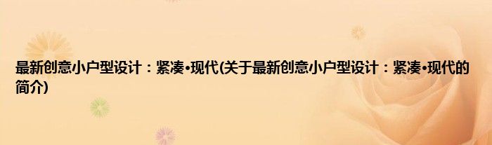 最新创意小户型设计:紧凑·现代(关于最新创意小户型设计:紧凑·现代的简介)