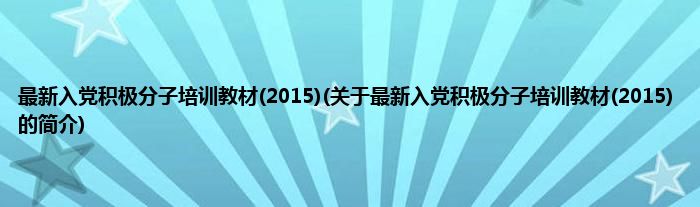 本文关于最新入党积极分子培训教材(2015)的简介就讲解完毕,希望对大家有所帮助。