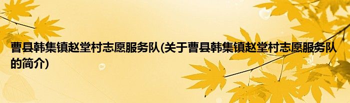 本文关于曹县韩集镇赵堂村志愿服务队的简介就讲解完毕,希望对大家有所帮助。