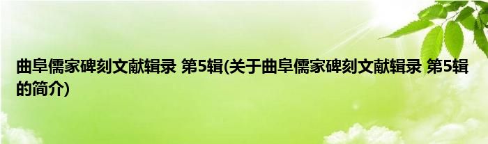 本文关于曲阜儒家碑刻文献辑录 第5辑的简介就讲解完毕,希望对大家有所帮助。