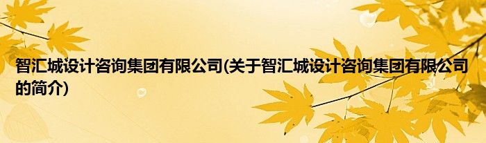 本文关于智汇城设计咨询集团有限公司的简介就讲解完毕,希望对大家有所帮助。