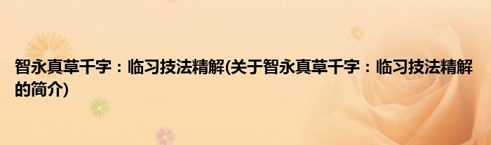 本文关于智永真草千字:临习技法精解的简介就讲解完毕,希望对大家有所帮助。