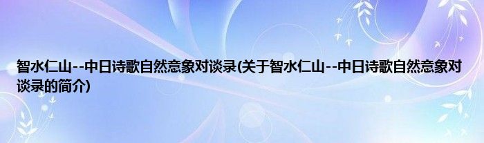 本文关于智水仁山--中日诗歌自然意象对谈录的简介就讲解完毕,希望对大家有所帮助。