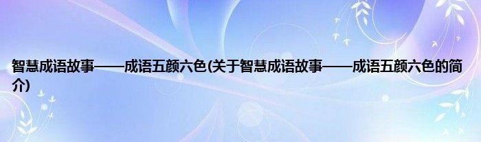 本文关于智慧成语故事——成语五颜六色的简介就讲解完毕,希望对大家有所帮助。
