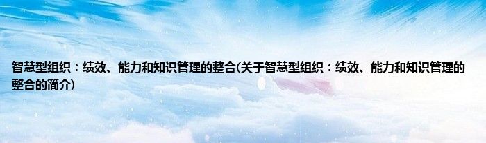大家好,智慧型组织:绩效、能力和知识管理的整合,关于智慧型组织:绩效、能力和知识管理的整合的简介很多人还不知道,现在让我们一起来看看吧!