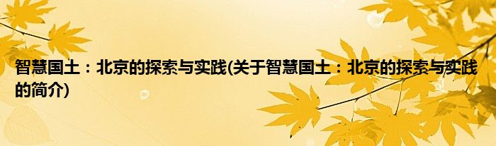 大家好,智慧国土:北京的探索与实践,关于智慧国土:北京的探索与实践的简介很多人还不知道,现在让我们一起来看看吧!
