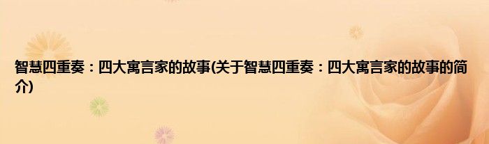 本文关于智慧四重奏:四大寓言家的故事的简介就讲解完毕,希望对大家有所帮助。