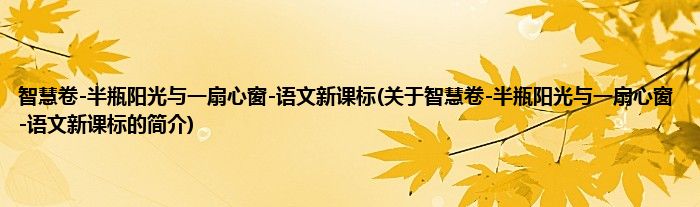 本文关于智慧卷-半瓶阳光与一扇心窗-语文新课标的简介就讲解完毕,希望对大家有所帮助。