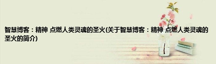 大家好,智慧博客:精神,点燃人类灵魂的圣火,关于智慧博客:精神,点燃人类灵魂的圣火的简介很多人还不知道,现在让我们一起来看看吧!