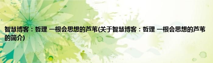 本文关于智慧博客:哲理,一根会思想的芦苇的简介就讲解完毕,希望对大家有所帮助。