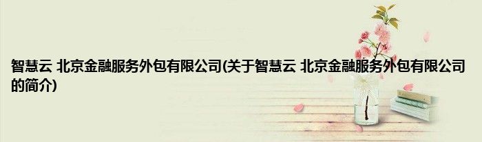 本文关于智慧云 北京金融服务外包有限公司的简介就讲解完毕,希望对大家有所帮助。