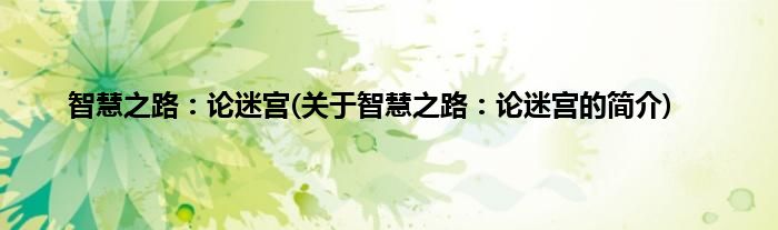 大家好,智慧之路:论迷宫,关于智慧之路:论迷宫的简介很多人还不知道,现在让我们一起来看看吧!