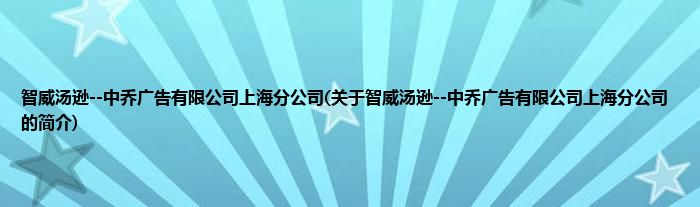 大家好,智威汤逊--中乔广告有限公司上海分公司,关于智威汤逊--中乔广告有限公司上海分公司的简介很多人还不知道,现在让我们一起来看看吧!