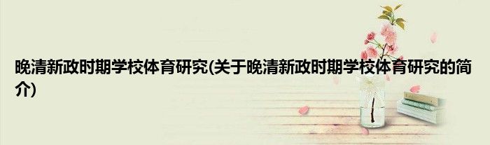 大家好,晚清新政时期学校体育研究,关于晚清新政时期学校体育研究的简介很多人还不知道,现在让我们一起来看看吧!