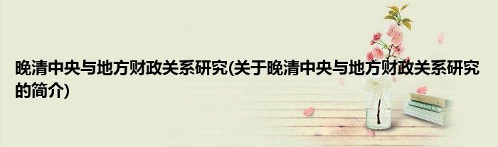 本文关于晚清中央与地方财政关系研究的简介就讲解完毕,希望对大家有所帮助。