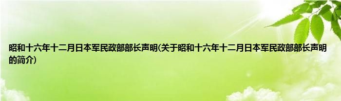 本文关于昭和十六年十二月日本军民政部部长声明的简介就讲解完毕,希望对大家有所帮助。