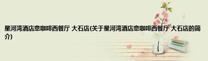 星河湾酒店意咖啡西餐厅大石店(关于星河湾酒店意咖啡西餐厅大石店的简介)