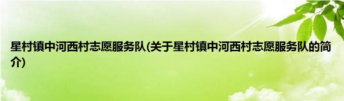 星村镇中河西村志愿服务队(关于星村镇中河西村志愿服务队的简介)