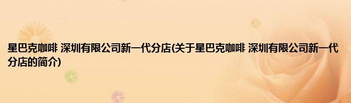 本文关于星巴克咖啡 深圳有限公司新一代分店的简介就讲解完毕,希望对大家有所帮助。