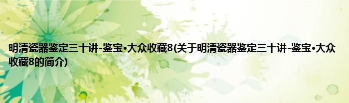 本文关于明清瓷器鉴定三十讲-鉴宝·大众收藏8的简介就讲解完毕,希望对大家有所帮助。