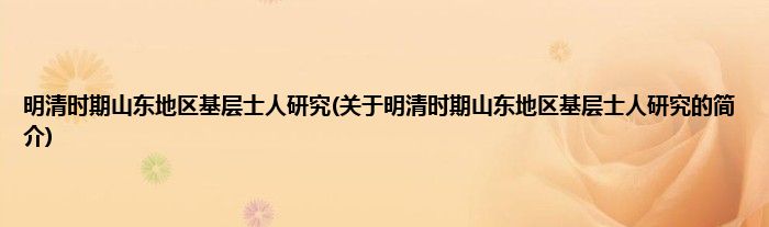 本文关于明清时期山东地区基层士人研究的简介就讲解完毕,希望对大家有所帮助。