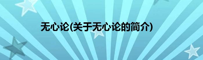 大家好,无心论,关于无心论的简介很多人还不知道,现在让我们一起来看看吧!