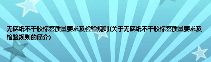 本文关于无底纸不干胶标签质量要求及检验规则的简介就讲解完毕,希望对大家有所帮助。