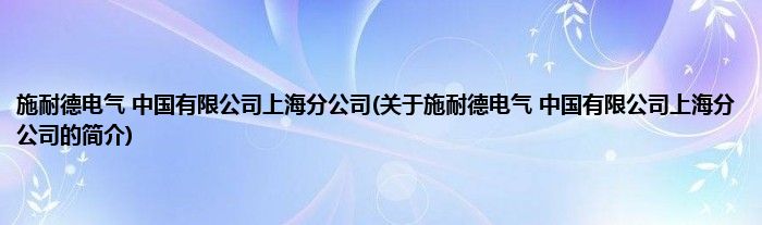 本文关于施耐德电气 中国有限公司上海分公司的简介就讲解完毕,希望对大家有所帮助。